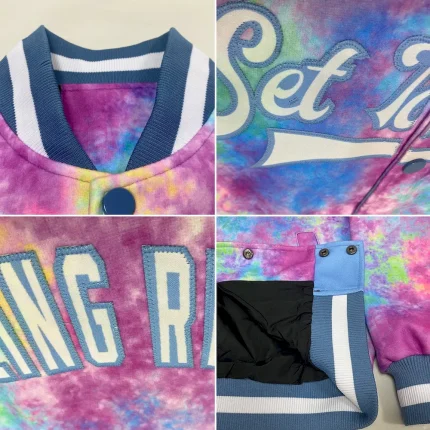 Custom Pink Gold-Navy Bomber Full-Snap Varsity Letterman Jacket