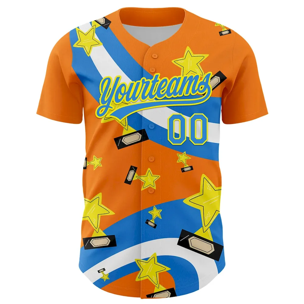 Custom Bay Orange Electric Blue-Light Yellow 3D Pattern Design Champion Trophy Authentic Baseball Jersey