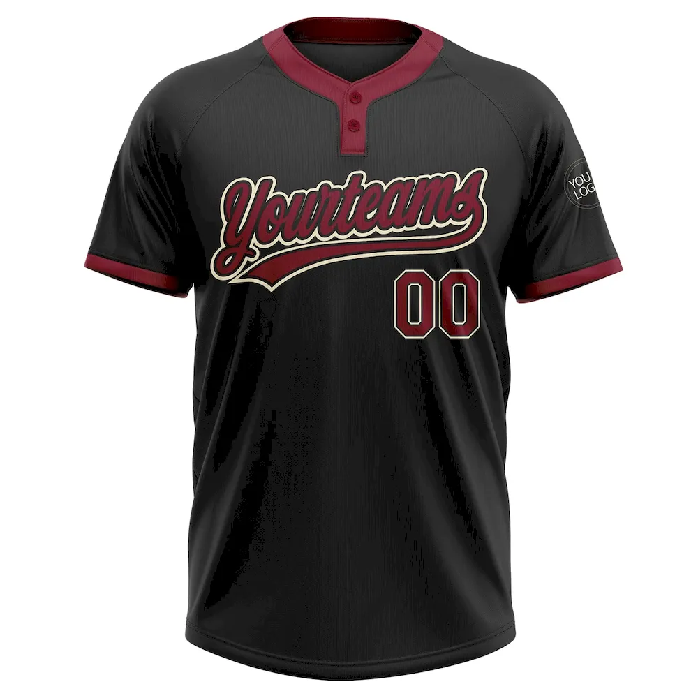 Custom Black Crimson-Cream Two-Button Unisex Softball Jersey