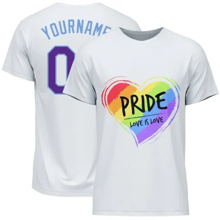 Custom White Purple-Light Blue Rainbow Colored Heart For Pride Love Is Love LGBT Performance T-Shirt